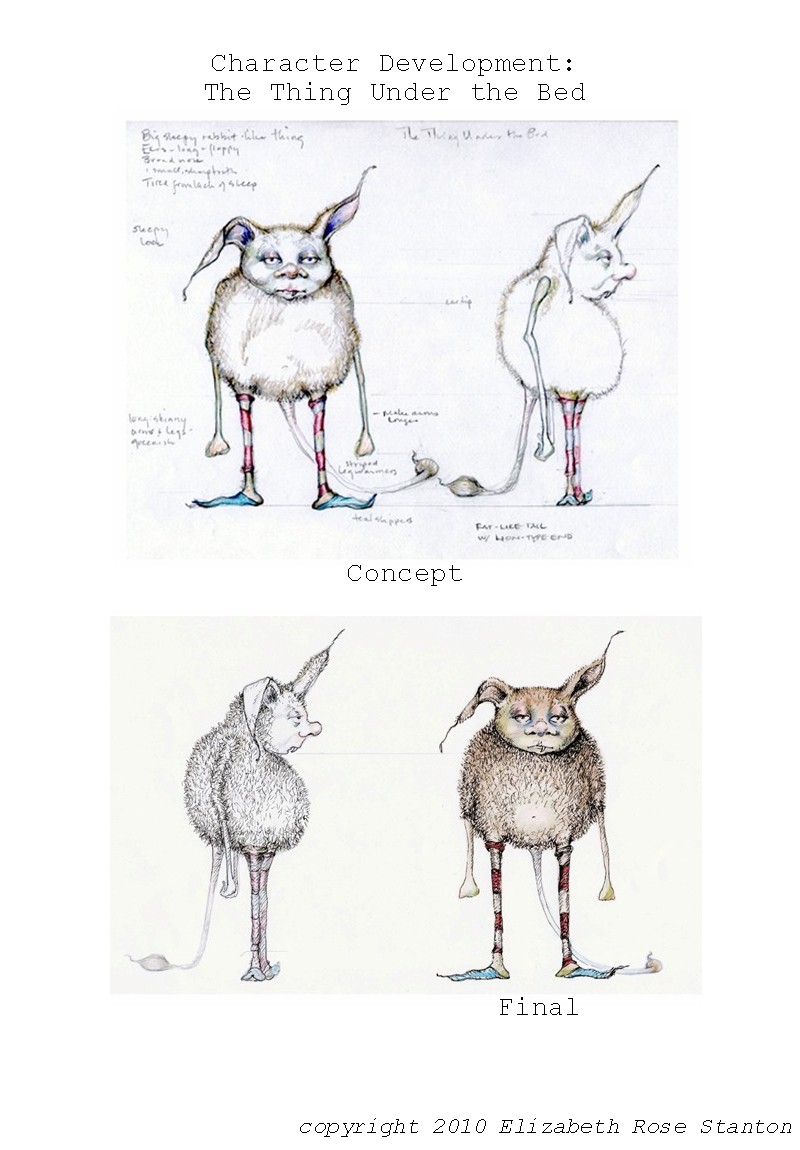 Some people expressed an interest in my picture book...so here is the development of the main character--cleverly, and oh-so-originally (for now) named, "The Thing."  He's basically a big, sleepy, bunny-like, well... Thing.  My vision of him from the beginning hasn't changed much--(maybe longer legs and slightly different proportions).  It seems I draw them pretty much the way they end up right out of the chute, so to speak.